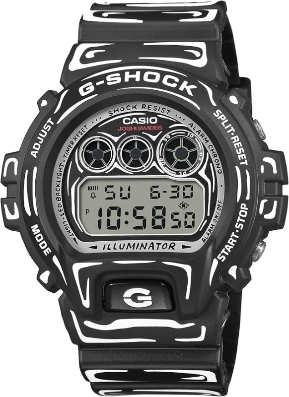 | 1983年の誕生以来、様々なカルチャーと融合し進化を続けるG-SHOCKから、Joshua Vides(ジョシュア・ヴィーダス)とのコラボレーションモデルです。 フロントボタンと三つ目液晶が特徴の「DW-6900」に、Joshua Videsならではのモノトーンを基調としたコミックタッチのグラフィックをフェイス部からベゼル、バンドまで時計全体に配しました。 ブラックベースにホワイトのグラフィックを施し、マット仕上げでシャープな表情に。Joshuaの手描き風フェイスデザインが特徴で、バックライト点灯時には彼のトレードマークの「Cone」が浮かび上がります。特製パッケージ付きのスペシャルモデルです。 Joshua Vides(ジョシュア・ヴィーダス)とは Joshua Vides(ジョシュア・ヴィーダス)は、白と黒の手描き表現を独特の感性と技術によって巧みに用いる、現代アーティスト兼デザイナーです。コミックやストリートアート、工業デザインを新たな視点で解釈し、日常の物品や車両、空間を印象的な二次元的グラフィックへと変貌させます。活動は世界各地に広がり、壁画、インスタレーション、彫刻といった多様な形でのコラボレーションを生み出しています。 |