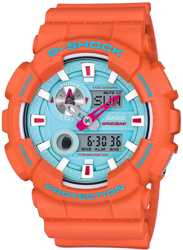| 世界のトップサーファーから高い支持を得ているG-SHOCKのエクストリームスポーツライン「G-LIDE(Gライド)」に、ハワイ発のストリートブランド「In4mation(インフォメーション)」との2016年コラボレーションモデルが登場。 ベースモデルには、アナログとデジタルのコンビネーションでサーフユースに特化した新型のGAX-100を採用。ディープオレンジを大胆にケース、バンドへあしらいました。文字板には、ハワイオアフ島の美しい海をシーフォームブルーで表現。このカラーは、コラボレーションモデルに初めて採用したカラーであり、G-SHOCKとのつながりを強固にした色合いです。アクセントとして共通のブランドカラーであるレッドをインデックス、タイドグラフの小針、分針に配色。また、バンドの両側、遊環、裏蓋へはIn4mationのブランドロゴをあしらい、スペシャルモデルに相応しい仕上げとしました。専用のパッケージと合わせブランドの世界観も表現しています。 サーファー必須の機能であるタイドグラフ、ムーンデータ、温度計測機能も搭載。また、タイドグラフはアナログ表示により、感覚的に現在の潮汐状況を把握できるようにしました。サーフシーンで斬新なデザインによるトレンドを生み出すIn4mationと、エクストリームスポーツで圧倒的な存在感を放つG-SHOCKがタッグを組んだNew G-LIDEのスペシャルコラボレーションモデルの登場です。 ・ ムーンデータ(月齢、月の形表示) ・ アナログタイドグラフ ・ 温度計測機能 ・ LEDライト ・ JIS1種耐磁性能 【In4mation(インフォメーション)】 Ryan Arakaki、Todd Shimabuku、Jun Jo、Keith Kanagusukuの4人が設立したハワイ発のストリートブランド。サーフファッションからスタートし、スケーターなどアメリカのスポーツファッション業界で大きな成長を遂げている。ハワイ独特のスタイルを、流行を追いかけるのではなく、斬新なデザインやコンセプトでトレンドを生み出すことをテーマに展開している。 |
